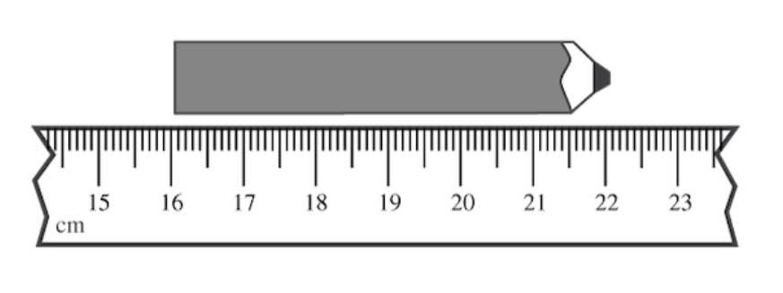 The length of a pencil is measured using part o zrlth s,/3any nzuk495hzw;1f a metre rule ;/g td- bsnui9rxc7t / that is graduated in millimetres, as shown dtr/bcngut x 9/7-;is below.  What is the length of the pencil?