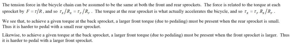 A 21-speed bicycle has seven sprockets at+ v82yoe sihaa0o j48mz/(tni the rear wheel and three at z of;e :4oh kz,jw9*is6zm2uanh5 8fk the pedal cranks. In which gear is it harder to pedal, a small rear sprocket or a large rear sprocf9aj hhz,;kw28e5mk6:sz* n uzo4foiket? Why? In which gear is it harder to pedal, a small front sprocket or a large front sprocket? Why?