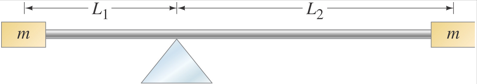 A uniform disk turns 5 ogxrv16 npcz yfs1kh n6,i+0at 2.4 $rev/s$ around a frictionless spindle. A nonrotating rod, of the same mass as the disk and length equal to the disk’s diameter, is dropped onto the freely spinning disk, Fig. 8–49. They then both turn around the spindle with their centers superposed. What is the angular frequency in rev/s of the combination?    $rev/s$