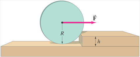 A wheel of mass M has radius R. It is standing vertically on the v hx q9+tl)2dmfloor, and we want to exert a horizontal force F at its axle so that it will climblhv 92x+qdm)t a step against which it rests (Fig. 8–55). The step has height h, where h